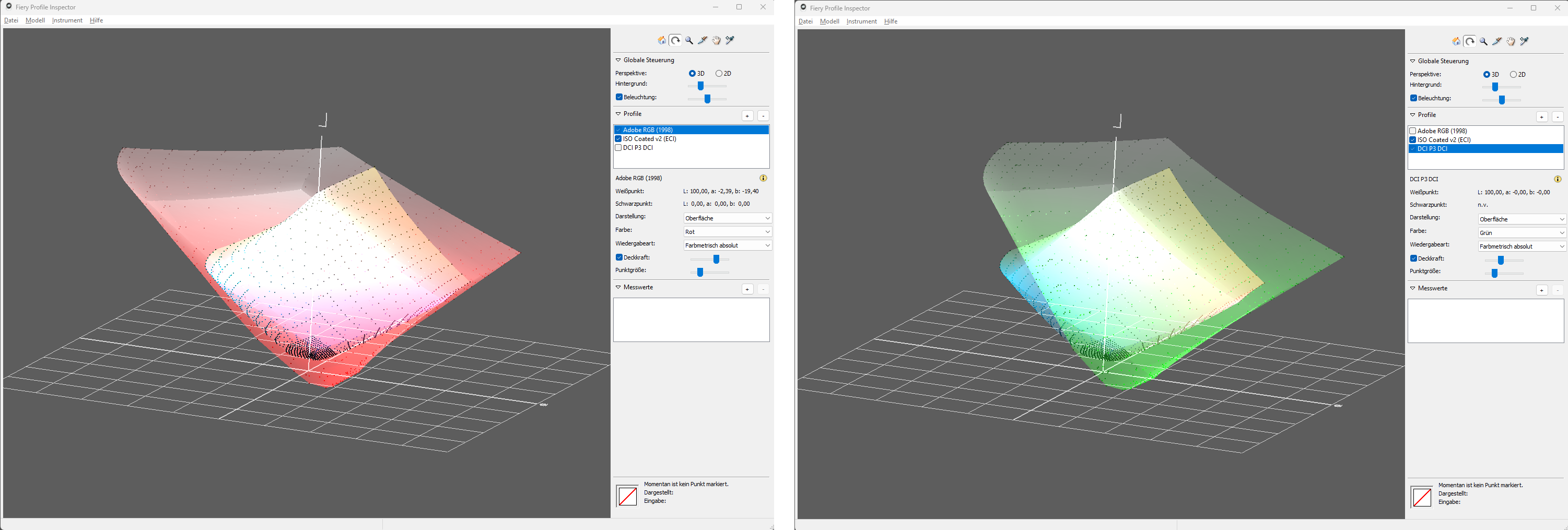 Farbraumvergleich AdobeRGB und DCI-P3 und_isocoated_v2Links: AdobeRGB und isocoated_v2Rechts: DCI-P3 und isocoated_v2zum nochmaligen Vergrößern auf das Bild klicken