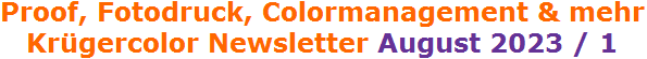nachstehend erhalten Sie unseren aktuellen Krügercolor - Newsletter zu Proof, Fotodruck, Colormanagement und mehr. Wenn diese Mail nicht korrekt dargestellt wird, klicken Sie bitte hier .