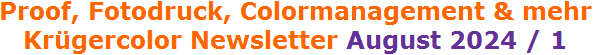 nachstehend erhalten Sie unseren aktuellen Krügercolor - Newsletter zu Proof, Fotodruck, Colormanagement und mehr. Wenn diese Mail nicht korrekt dargestellt wird, klicken Sie bitte hier .