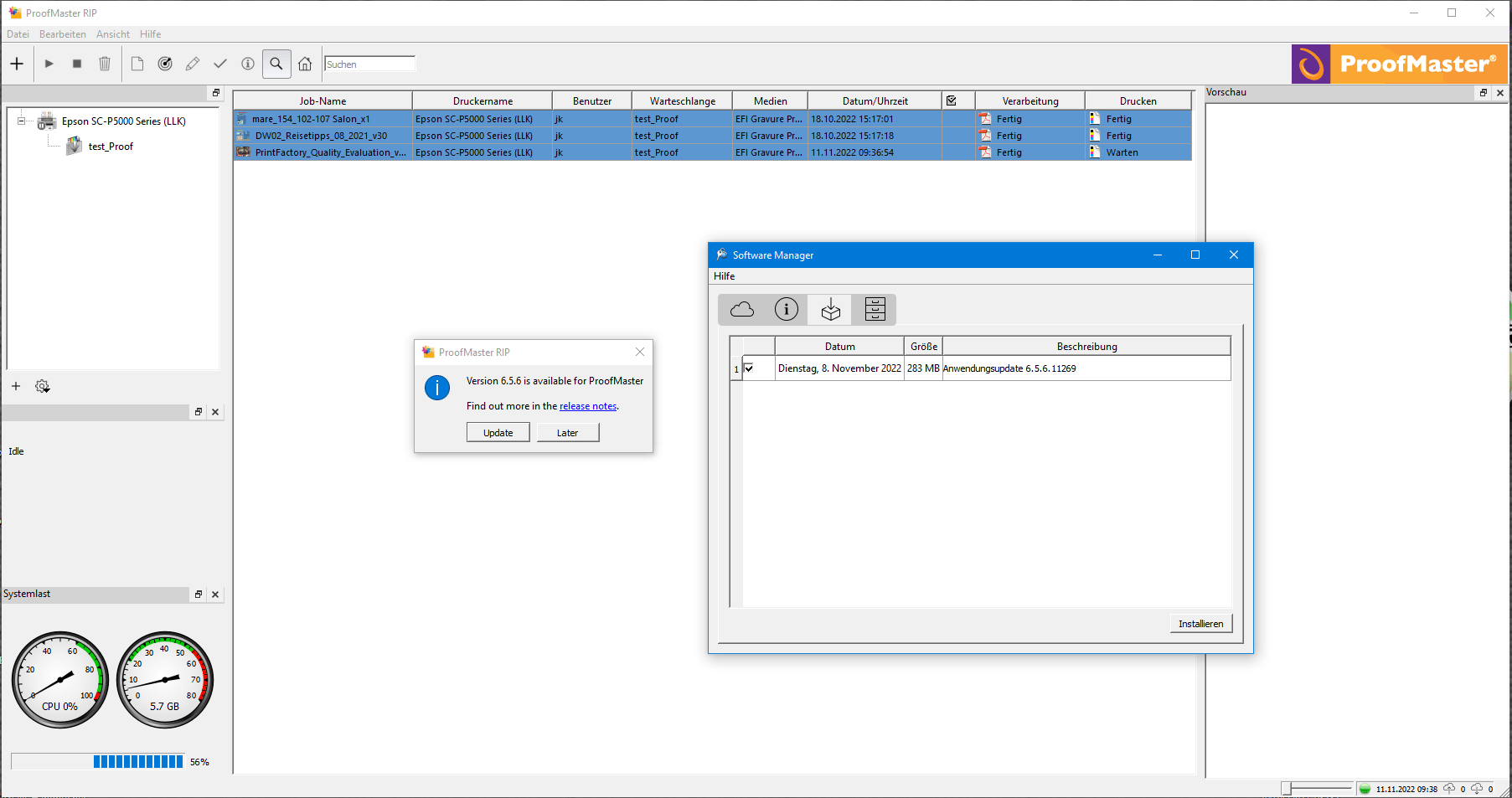 Seit dem Juli 2023 gibt es das update auf die Version 6.6.11 von Proofmaster und Printfactory. Es wird schrittweise über die Updatefunktion für alle Anwender bereitgestellt. Der Updatehinweis kommt beim Starten des RIP-Programms und auch im Softwaremanager.